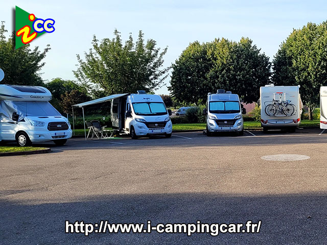 Belle aire. Emplacements spacieux, beau paysage, commerces à proximité. 3€ les 24 heures.
