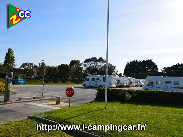 J'ai passé 2 jours sur cette aire qui est calme la nuit. Elle est située à 100 mètres d'un super U avec laverie et d'un Mr Bricolage. Dommage qu'il n'y ait pas l'électricité même en faible ampérage pour les batteries. Pratique par temps de pluie pour la TV. La borne est artisanale, très bien conçue avec bonne séparation des services. Il y a 5 places étroites mais gratuites sur la droite avant d'entrer sur l'aire et 6 places gratuites réservées aux camping cars au Super U. Au fond de l'aire, un chemin conduit à la baie qui est à 150 mètres. Il y a un restaurant à menus très abordables au Super U.